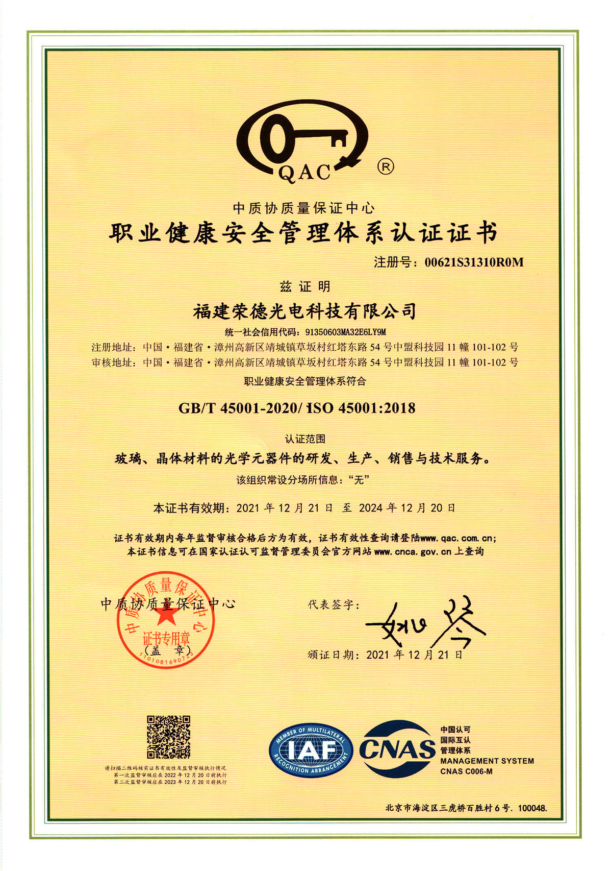 威廉体育光电通过ISO45001职业健康与安全管理体系认证和 ISO14001环境管理体系认证